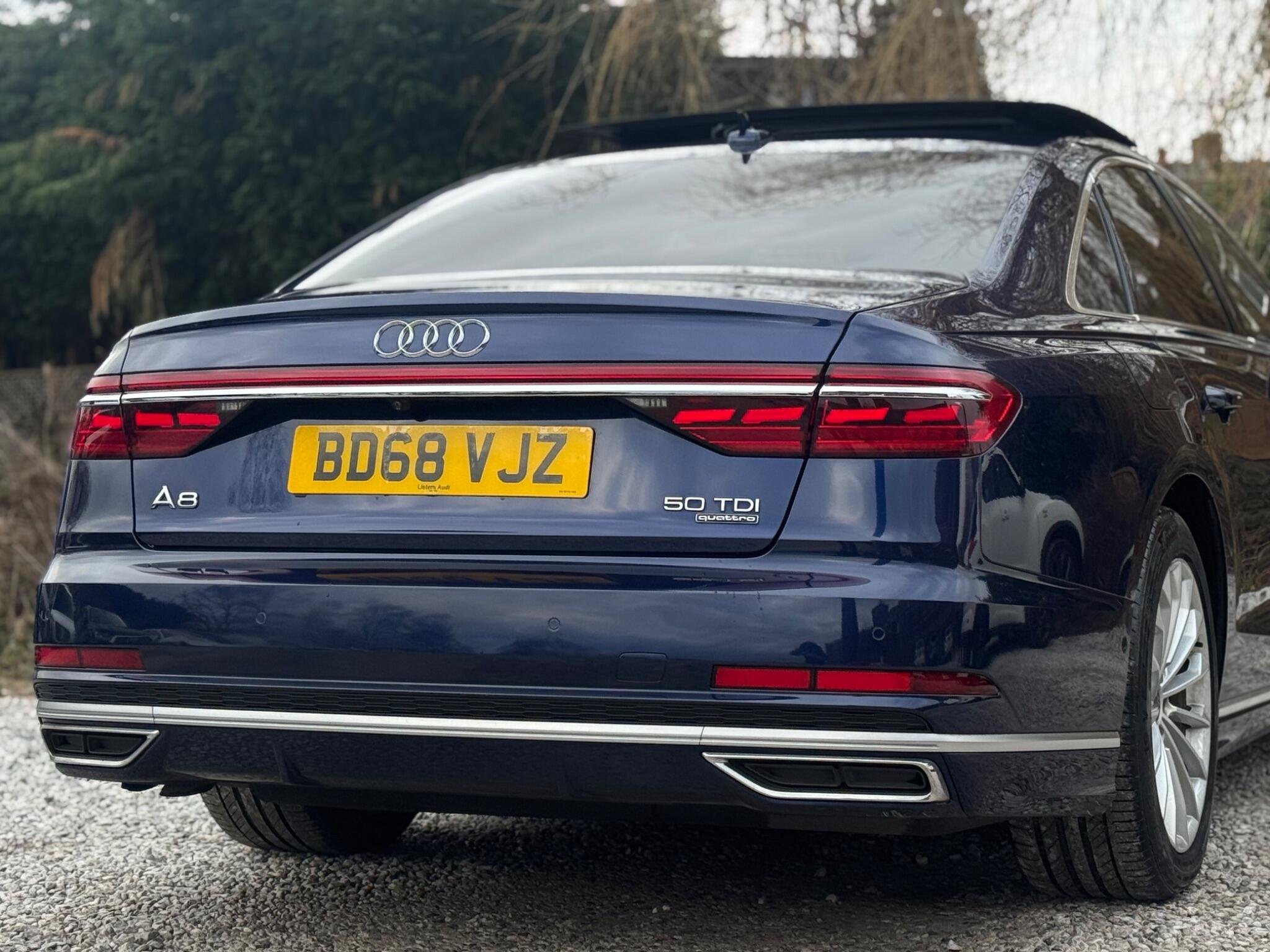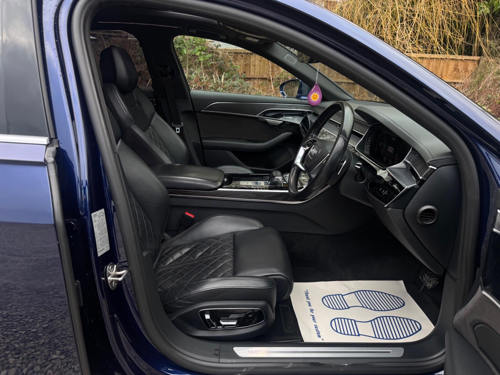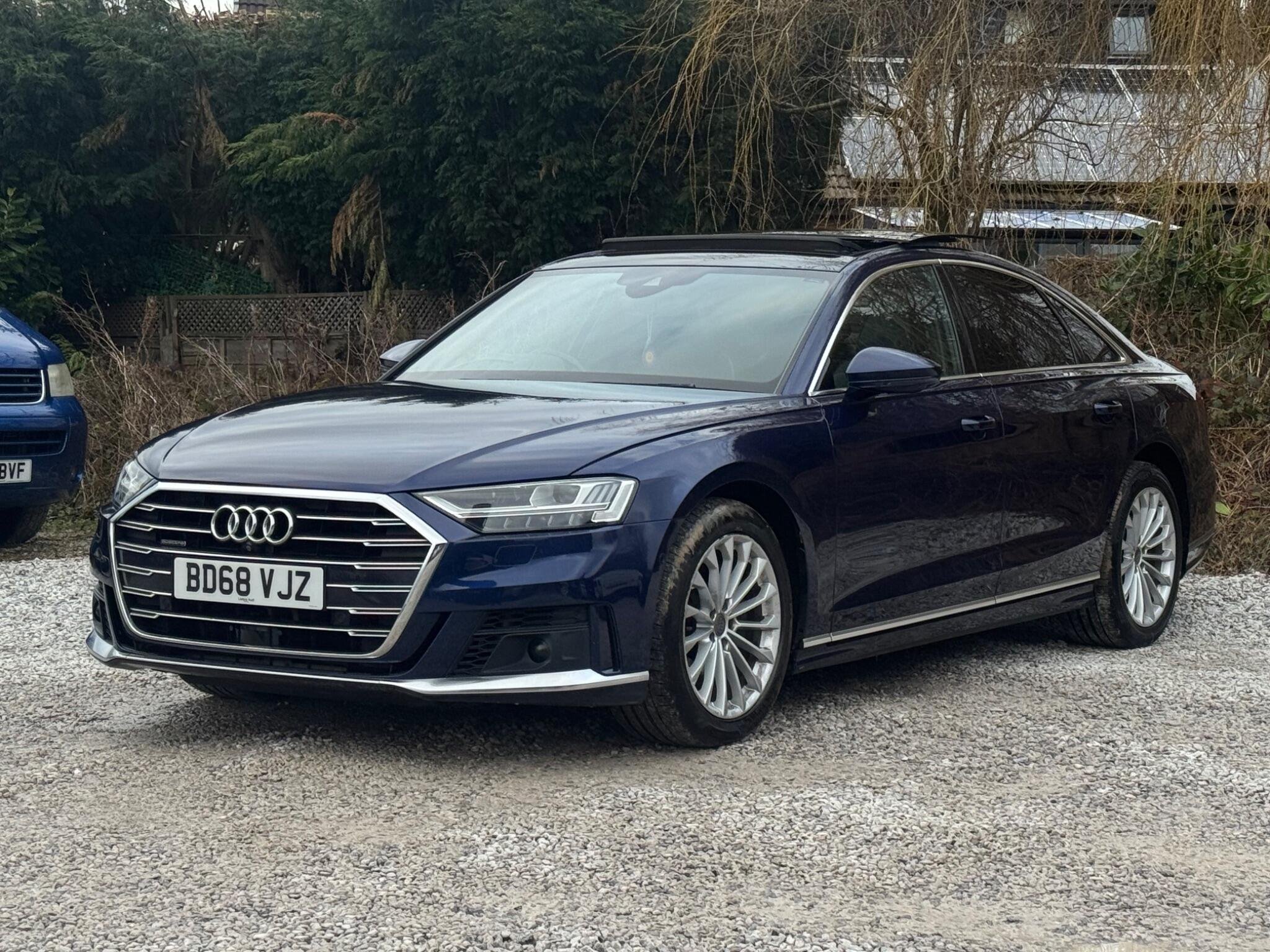 1 OWNER FROM NEW|SERVICE HISTORY - 6 MAIN DEALER SERVICES - MOST RECENT SERVICE DONE @ 95K|LOGBOOK|LAST SERVICE AT @ 95K Optional Equipment when new £4,975 inc. VAT Comfort & Sound pack £2,125 Panoramic glass sunroof £1,650 Acoustic double glazing £700 Privacy glass £500 Black Valcona leather (Individual comfort contour) - Total price when new £90,950 inc. VAT Comfort and Sound Package Rare Valuable HD Matrix LED Headlights with Audi Laser Light and OLED Rear Lights Rare Valuable Panoramic Glass Sunroof Rare Valuable Audi Exclusive Cool Box Very rare Digital TV Reception Very rare OLED Rear Lights Very rare DVD Changer Very rare Audi Exclusive Leather Trim Package 1 in Valcona Leather Very rare Equipment: Navigation System Navigation HDD Parking Sensor(s) Climate Control Leather Trim 19" Alloy Wheels Privacy Glass Sunroof This 2018 Audi A8 TDI V6 S line presents a superb ownership proposition, having been meticulously maintained by just one owner from new. This executive saloon boasts a powerful 3.0 litre diesel engine paired with Audi's renowned four wheel drive system, ensuring confident performance in all conditions. As a Euro 6 compliant vehicle, it meets stringent emission standards. The S line trim level enhances its already sophisticated appeal, while the inclusion of a panoramic glass sunroof with opening function invites natural light and an airy feel to the cabin. Advanced lighting technology is evident with HD Matrix LED headlights featuring Audi Laser Light, complemented by striking OLED rear lights. -