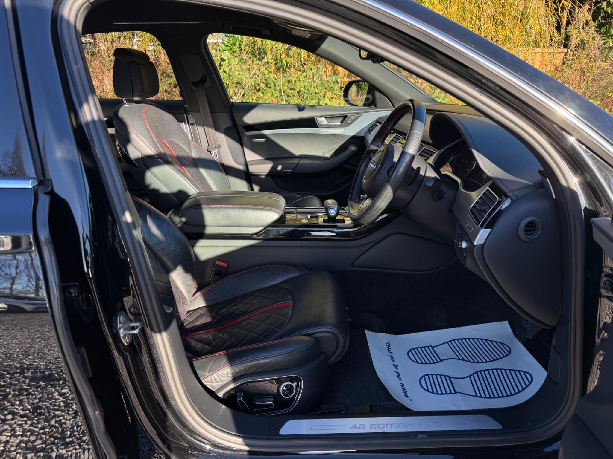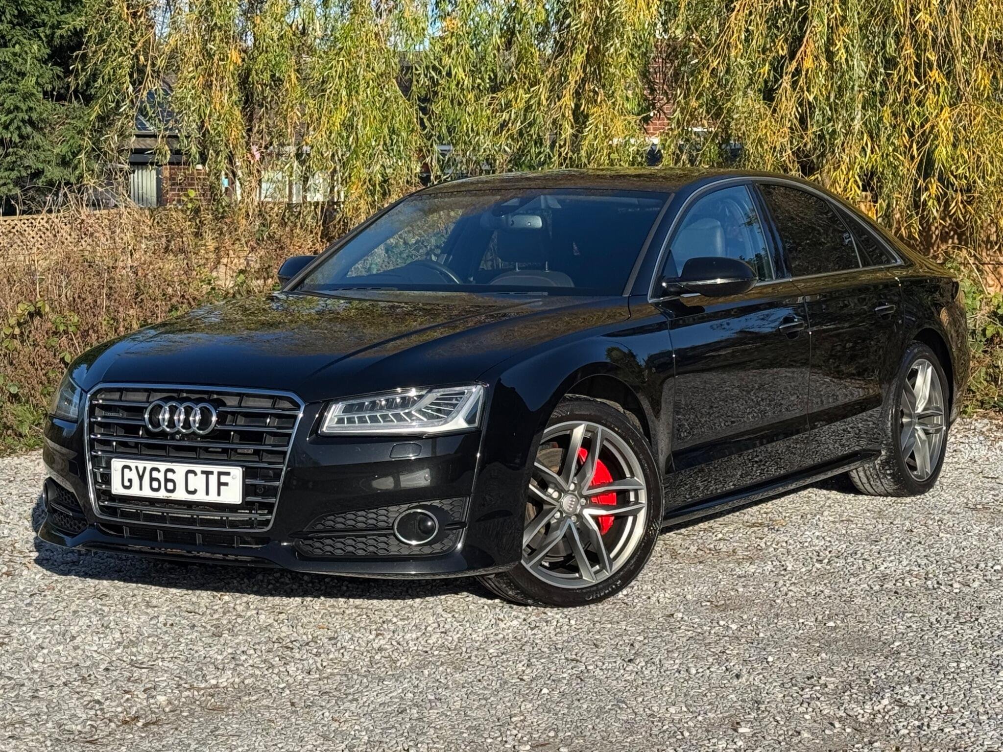 2 KEYS|SERVICE HISTORY - 6 SERVICES - 3 MAIN DEALER SERVICES|LOGBOOK|EURO 6|ULEZ COMPLIANT| This 2016 Audi A8 TDI V6 Edition 21 presents a remarkable opportunity with its exceptionally low mileage of just 69,500 miles for its age. This sophisticated saloon boasts a powerful 3.0 litre diesel engine paired with Audi's renowned four wheel drive system, ensuring confident performance in all conditions. As a Euro 6 compliant vehicle, it meets stringent emission standards. The Edition 21 trim level enhances the already premium A8 experience, and you'll appreciate the comfort of heated front seats, the advanced illumination of Audi Matrix LED headlights, and the convenience of a rear view camera alongside front and rear parking sensors, making manoeuvring effortless. The A8 TDI V6 Edition 21 offers a compelling blend of performance and practicality. Its impressive acceleration, reaching 0-60mph in a swift 5.7 seconds, demonstrates its dynamic capabilities. This performance is further complemented by a generously sized boot, providing ample space for luggage or shopping. These highlights, including the rapid acceleration and substantial boot capacity, position this Audi A8 as a superior choice compared to other vehicles in its class, offering a refined and capable driving experience. -