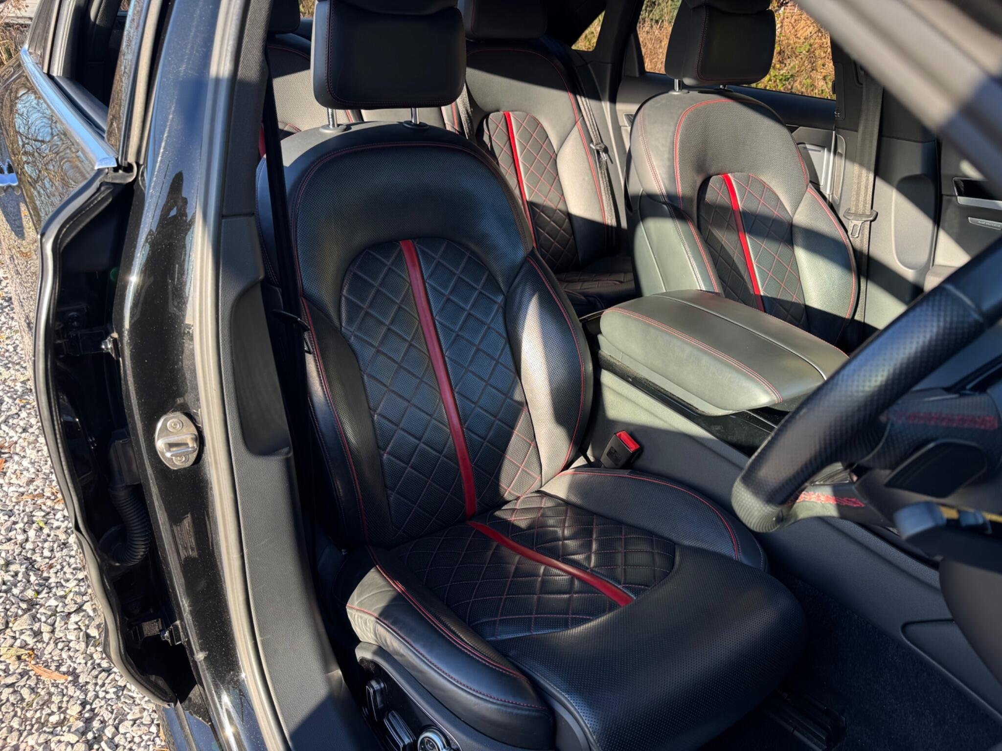 - Seats - Contrasting Stitching and Piping in Crimson Red