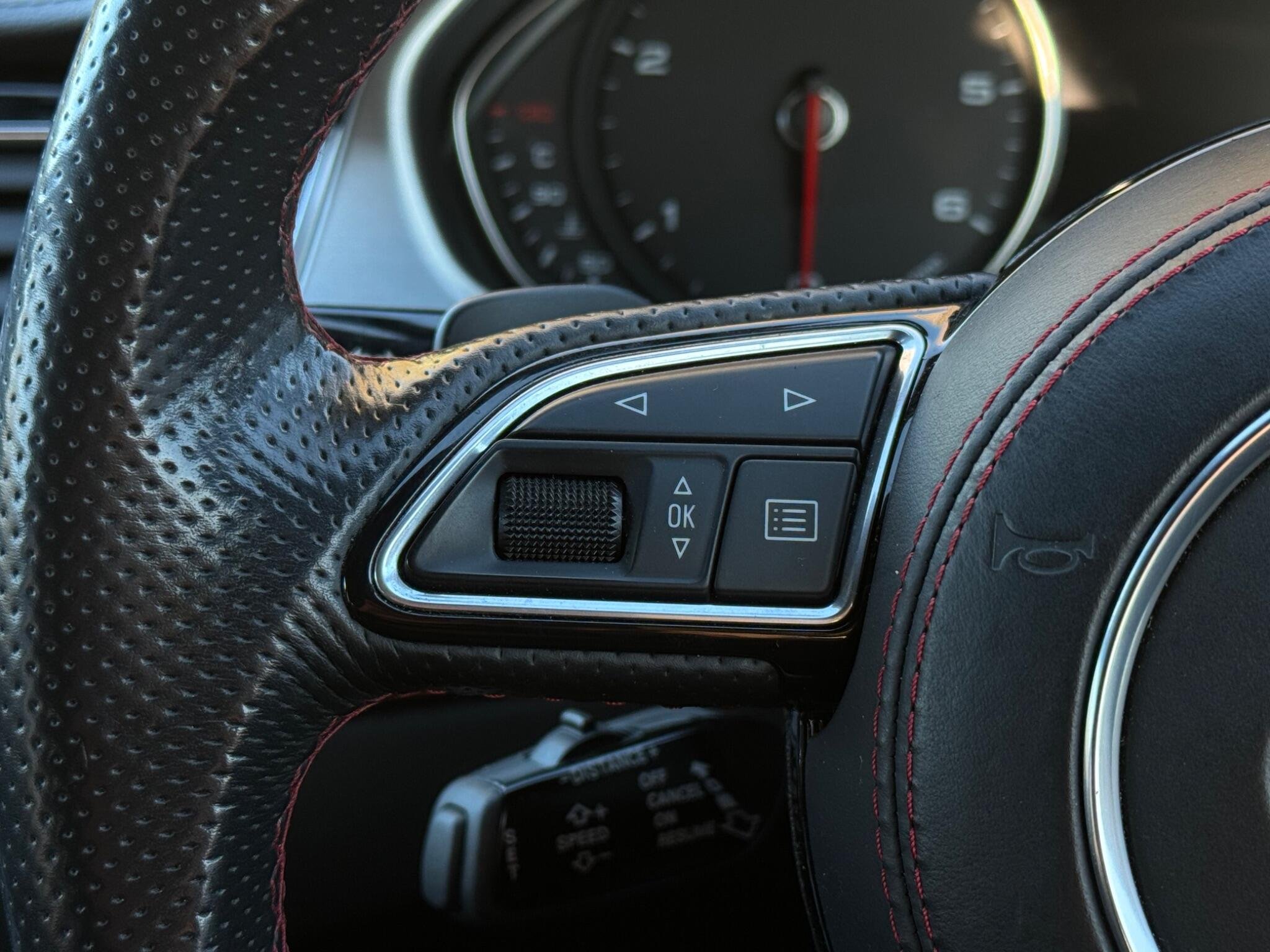 - Steering Wheel - Contrasting Stitching in Crimson Red