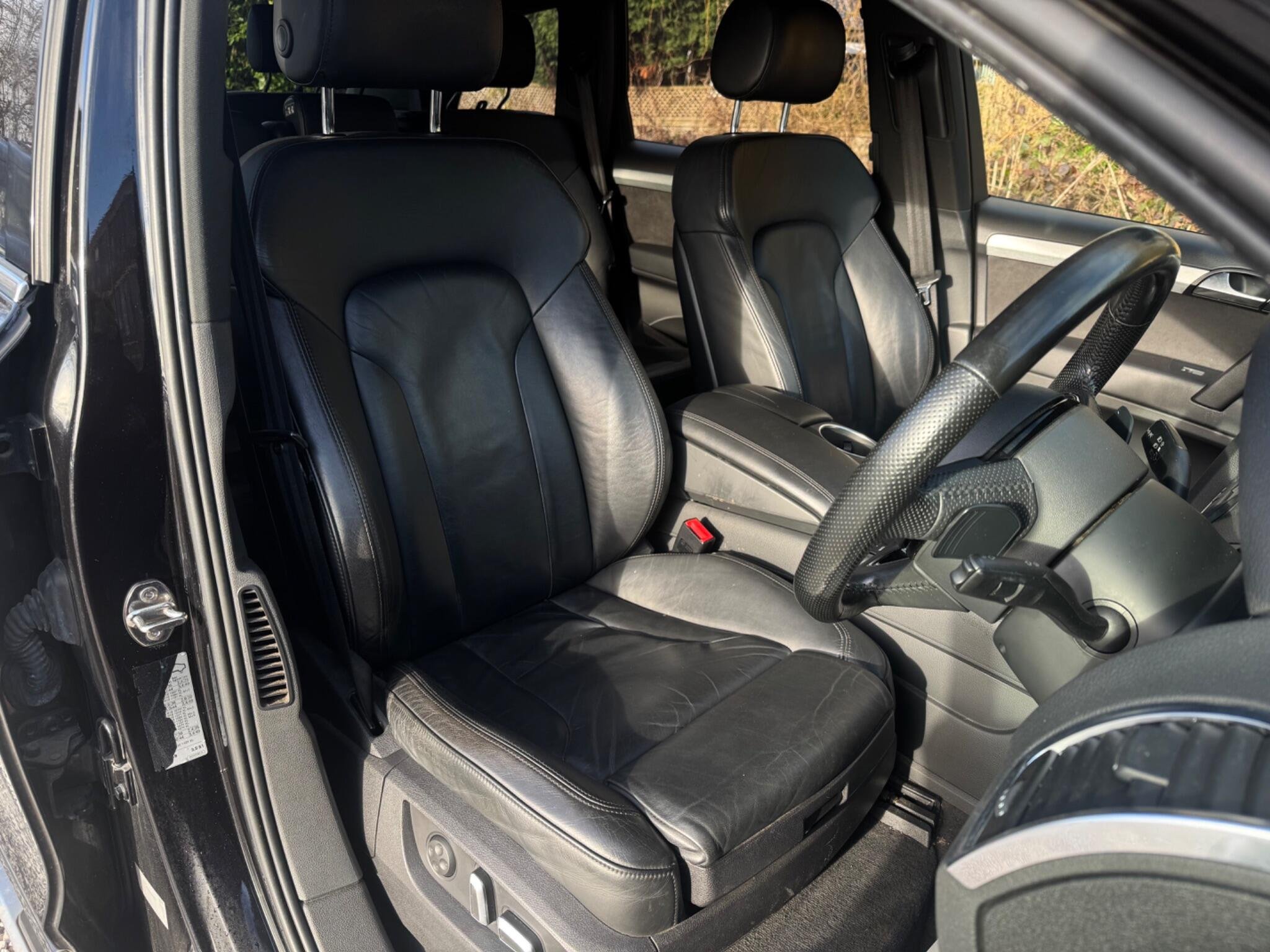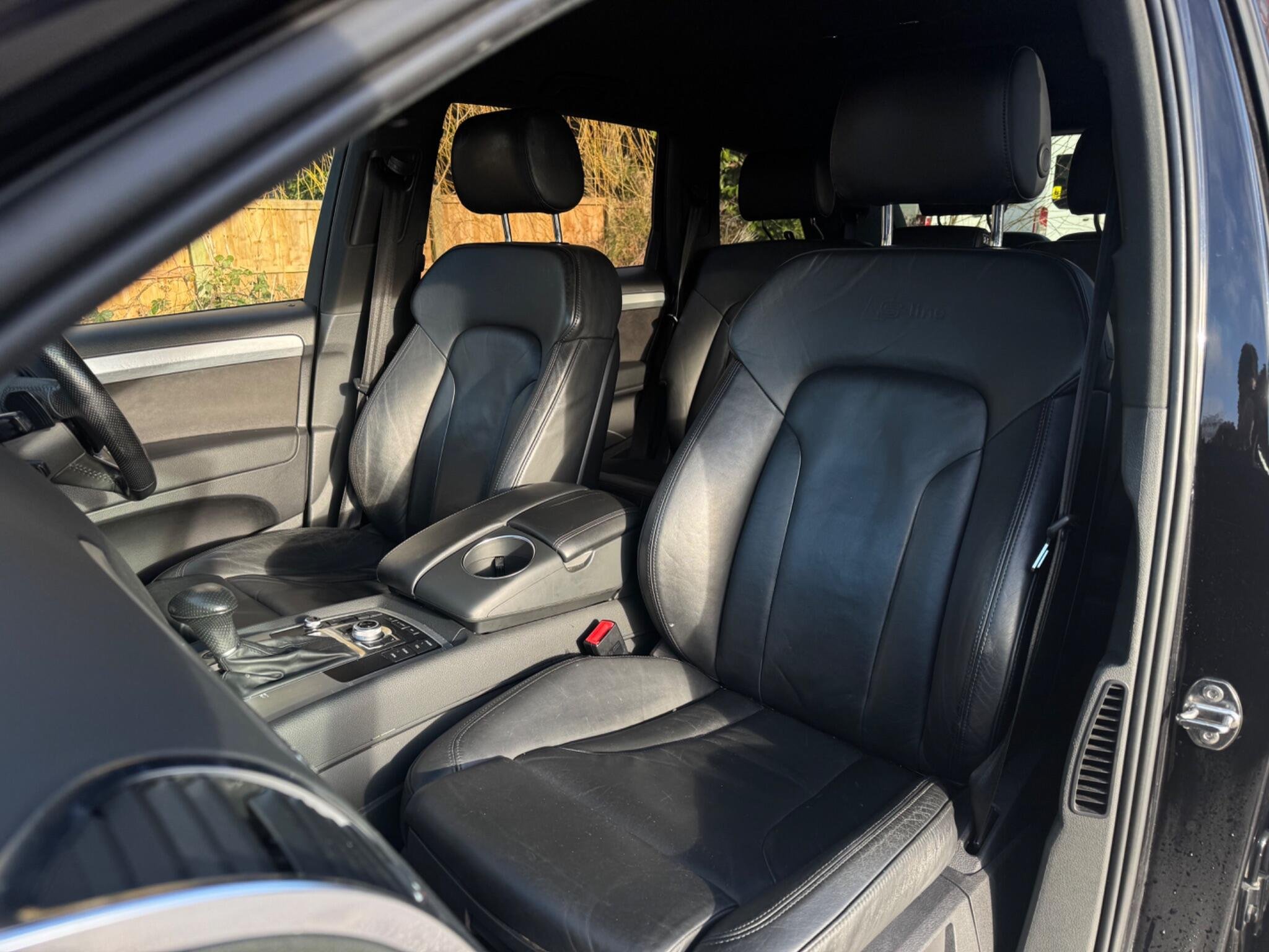 3 FORMER KEEPERS|PART SERVICE HISTORY - 5 SERVICES - 4 MAIN DEALER SERVICES|LOGBOOK|K2| Optional Equipment when new £6,010 inc. VAT Verano Leather-plus upholstery with electric sports seats £1,380 21 x 10J '5-segment-spoke' design titanium alloy wheels with 295/35 R21 Y tyres £1,070 Audi Parking System Advanced with reversing camera £725 Stainless steel running boards £715 Metallic paint £655 Double glazing with privacy glass £390 Electric tailgate £385 Audi Music Interface (AMI) £255 Door mirrors - folding and auto-dimming £165 Seat heating for front and outer rear seats £140 Colour Driver's Information System (DIS) £130 Black Verano leather Plus - Matt-brushed aluminium - Orca black, metallic - Total price when new £51,865 inc. VAT Audi Entertainment Mobile Very rare CD Changer Very rare TV Reception - Digital Very rare Door Mirrors - Heated-Electrically Adjustable-Folding-Auto-Dimming Rare 21in Alloy Wheels - 5-Segment-Spoke Design Digital TV Reception Verano Leather - Black Equipment Navigation System Parking Sensor(s) Climate Control Leather Trim 7 Seats 21" Alloy Wheels Privacy Glass This 2014 Audi Q7 TDI V6 S line Sport Edition offers a compelling blend of performance and practicality. Featuring a powerful 3.0 litre diesel engine and Audi's renowned four wheel drive system, this seven seater is ready for any journey. The S line Sport Edition trim enhances its appeal, while notable features include the Audi Parking System Advanced with a reversing camera, front and rear parking sensors, and heated front seats for added comfort. The Q7's impressive acceleration, reaching 0-62mph in just 7.8 seconds, demonstrates its dynamic capability. Furthermore, its low insurance group rating indicates that running costs are more favourable compared to similar vehicles. With a substantial towing weight of 3200 kg, this Audi Q7 is a versatile choice for families and those needing to tow. -