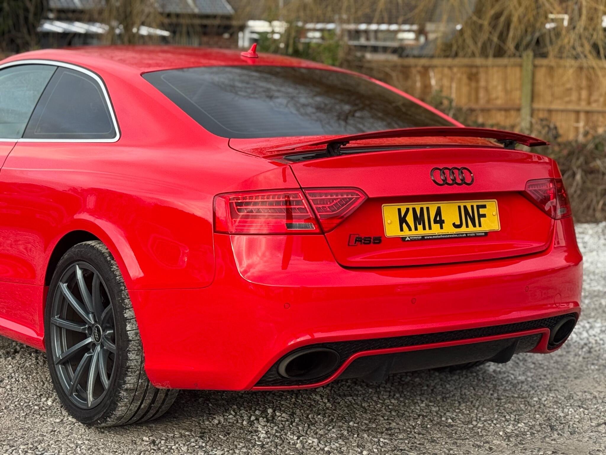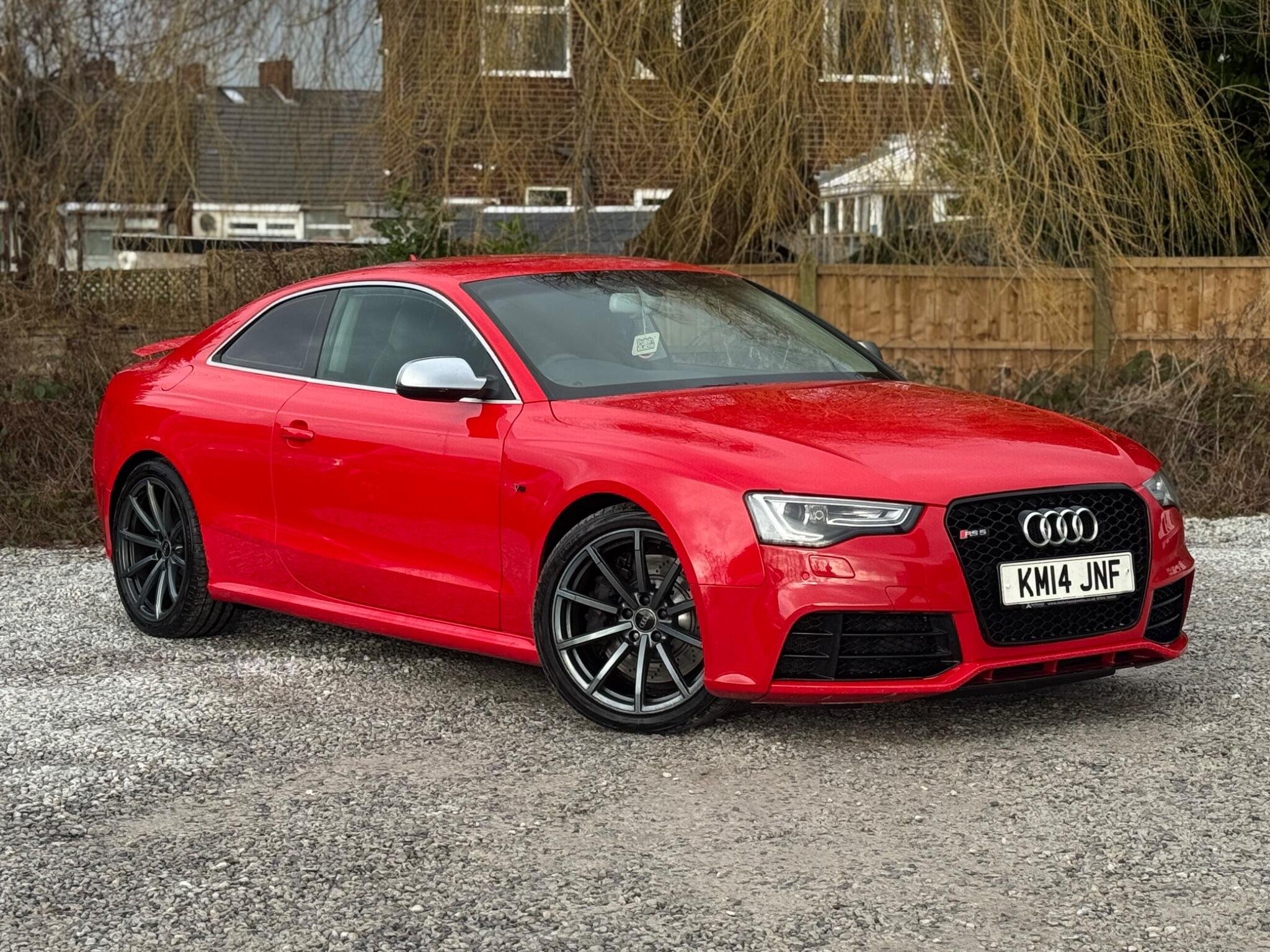 FULL SERVICE HISTORY - 7 SERVICES - 4 MAIN DEALER SERVICES - SERVICE INTERVALS @ 22K, 23K, 39K, 31K, 40K, 44K, 47K, 66K - GEARBOX SERVICE DONE @ 31,858 & 40,358 - MOST RECENT SERVICE DONE @ 66,840|LOGBOOK|K2| 6-CD Changer and DVD Player Very rare Mobile Telephone Preparation - Low with Bluetooth Very rare TV Reception - Digital Very rare Door Mirrors - Heated-Electrically Adjustable-Folding Rare Privacy Glass Fine Nappa Leather - Super Sports Seats - Black with Rock Grey piping This 2014 Audi RS5 FSI V8 offers a compelling blend of performance and practicality, featuring a potent 4.2 litre petrol engine and Audi's renowned four wheel drive system for exceptional handling. This model comes equipped with front and rear parking sensors, including Audi Parking System Plus, to assist with manoeuvring. Automatic Bi-Xenon Plus headlights with a light sensor ensure optimal visibility, while the electronic three zone climate control provides comfort for all occupants. Experience exhilarating performance with a rapid 0-62mph acceleration time of just 4.5 seconds, demonstrating its superior capability compared to many other vehicles. This RS5 also boasts a surprisingly large boot space, making it a versatile choice for everyday use and longer journeys. Furthermore, its placement in a low insurance group adds to its appeal, offering a more economical ownership experience. -