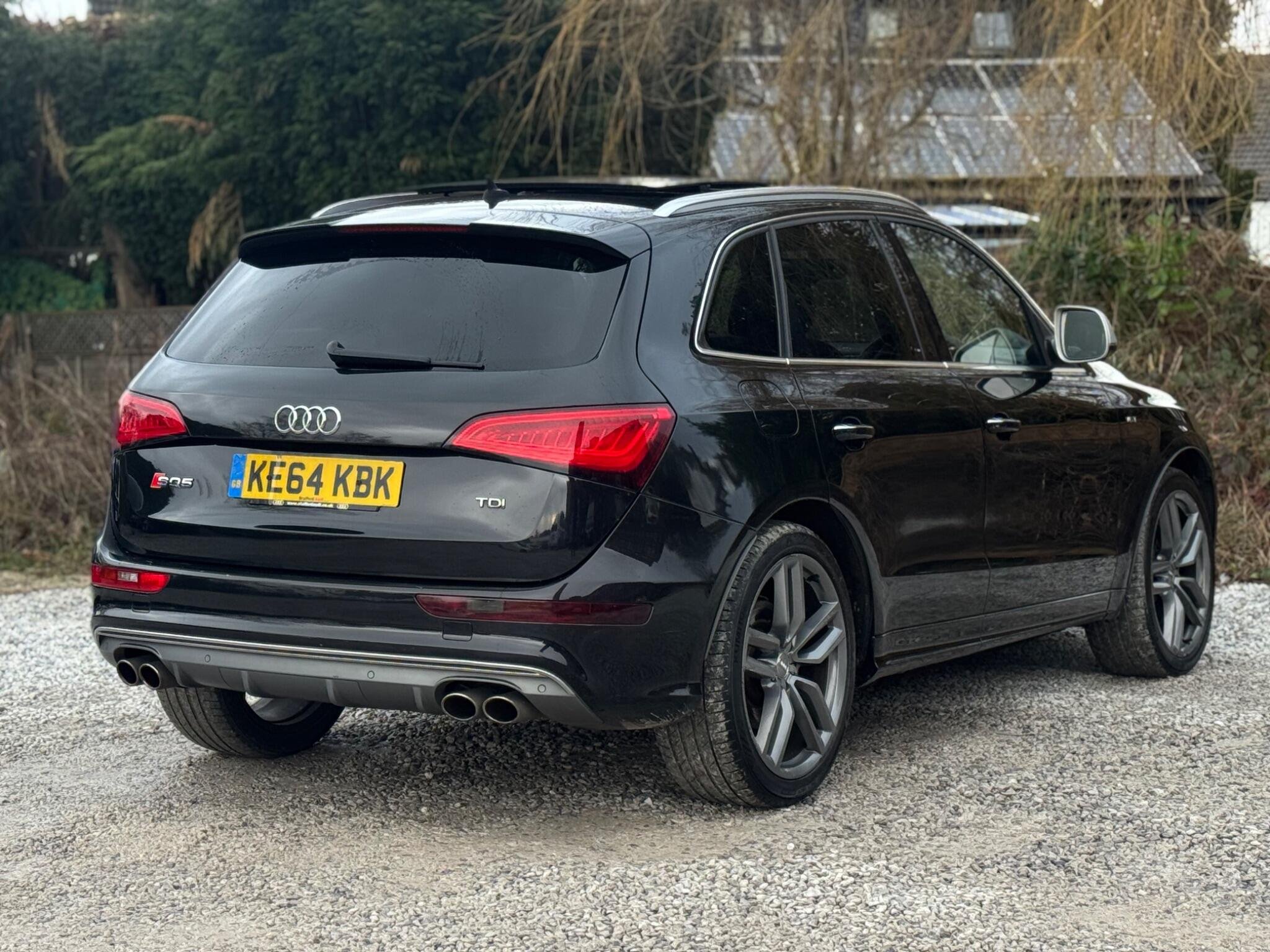 2 FORMER KEEPERS|SERVICE HISTORY - 7 MAIN DEALER SERVICES|LOGBOOK|K2| Panoramic Glass Sunroof Rare Valuable 21in Alloy Wheels - 5-Twin-Spoke Star Design in Titanium Look with High Gloss Finish Valuable Mobile Telephone Preparation - Low with Bluetooth and Voice Control Very rare Seats - Front Electric Lumbar Support with Memory Very rare Bang and Olufsen Sound System Valuable TV Reception - Digital Very rare Steering Wheel - 3-Spoke Leather-Multifunction-Flat Bottomed-Shift Paddles Rare 6-CD Changer and DVD Player Rare Power Operated Tailgate Rare Door Mirrors - Heated-Electrically Adjustable-Folding Privacy Glass Heated Front Seats Fine Nappa Leather - Sports Seats - Black-Black Equipment: Air Conditioning Auto Climate Control Automatic Lights Bluetooth DAB Dual Zone Climate Electric Sun Roof Front Parking Sensors Full Leather Trim This 2014 Audi SQ5 BiTDI V6 offers a compelling blend of performance and practicality, boasting a powerful 3.0L Diesel engine and Four Wheel Drive for confident handling. Its Bi-Xenon Plus headlights with automatic activation and a light sensor ensure excellent visibility, while the deluxe 3 zone climate control provides comfort for all occupants. Stay connected on the go with the integrated Bluetooth mobile telephone preparation, and manoeuvre with ease thanks to the rear parking sensors. The SQ5 stands out with its impressive acceleration, reaching 0-62mph in just 5.1 seconds, demonstrating its dynamic capabilities. This performance is matched by a substantial towing weight of 2400 kg, making it a versatile choice for various needs. Furthermore, its low insurance group rating and generous boot space offer excellent value and everyday usability, setting it apart from other vehicles in its class. -