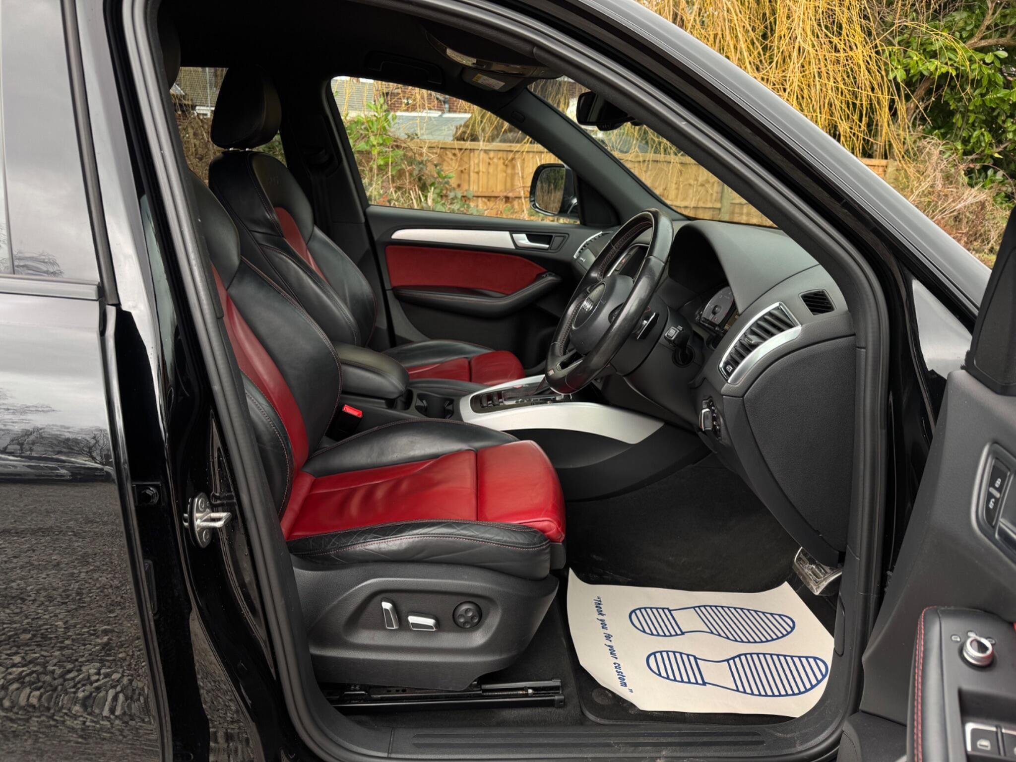 3 FORMER KEEPERS|PART SERVICE HISTORY - 3 MAIN DEALER SERVICES|LOGBOOK|K2| Panoramic Sunroof - Open Sky Very rare Valuable Mobile Telephone Preparation - Low with Bluetooth and Voice Control Very rare TV Reception - Digital Very rare 20in Alloy Wheels - 5-Twin-Spoke Off-Road Design Very rare Power Operated Tailgate Rare 6-CD Changer and DVD Player Rare Black Roof Rails Door Mirrors - Heated-Electrically Adjustable-Folding Privacy Glass Fine Nappa Leather - Sports Seats - Magma Red-Black Heated Front Seats This 2015 Audi SQ5 BiTDI V6 offers a compelling blend of performance and practicality, boasting a powerful 3.0L Diesel engine and a responsive Four Wheel Drive system. As a Euro 6 compliant vehicle, it meets modern emissions standards. This model comes equipped with Xenon headlights, a Bluetooth interface for mobile telephone preparation, and rear parking sensors to aid manoeuvrability. The convenience of automatic headlights, activated by a light sensor, and deluxe 3 zone climate control ensure a comfortable driving experience for all occupants. The SQ5 stands out with its impressive acceleration, reaching 0 to 62 miles per hour in just 5.2 seconds, demonstrating its dynamic capabilities. This performance is further enhanced by its low insurance group, making it a more economical choice than many comparable vehicles. Additionally, the generous boot space provides ample room for luggage or shopping, highlighting its versatility for everyday use and longer journeys. With a substantial towing weight of 2400 kg, this Audi SQ5 is also well suited for towing needs. -
