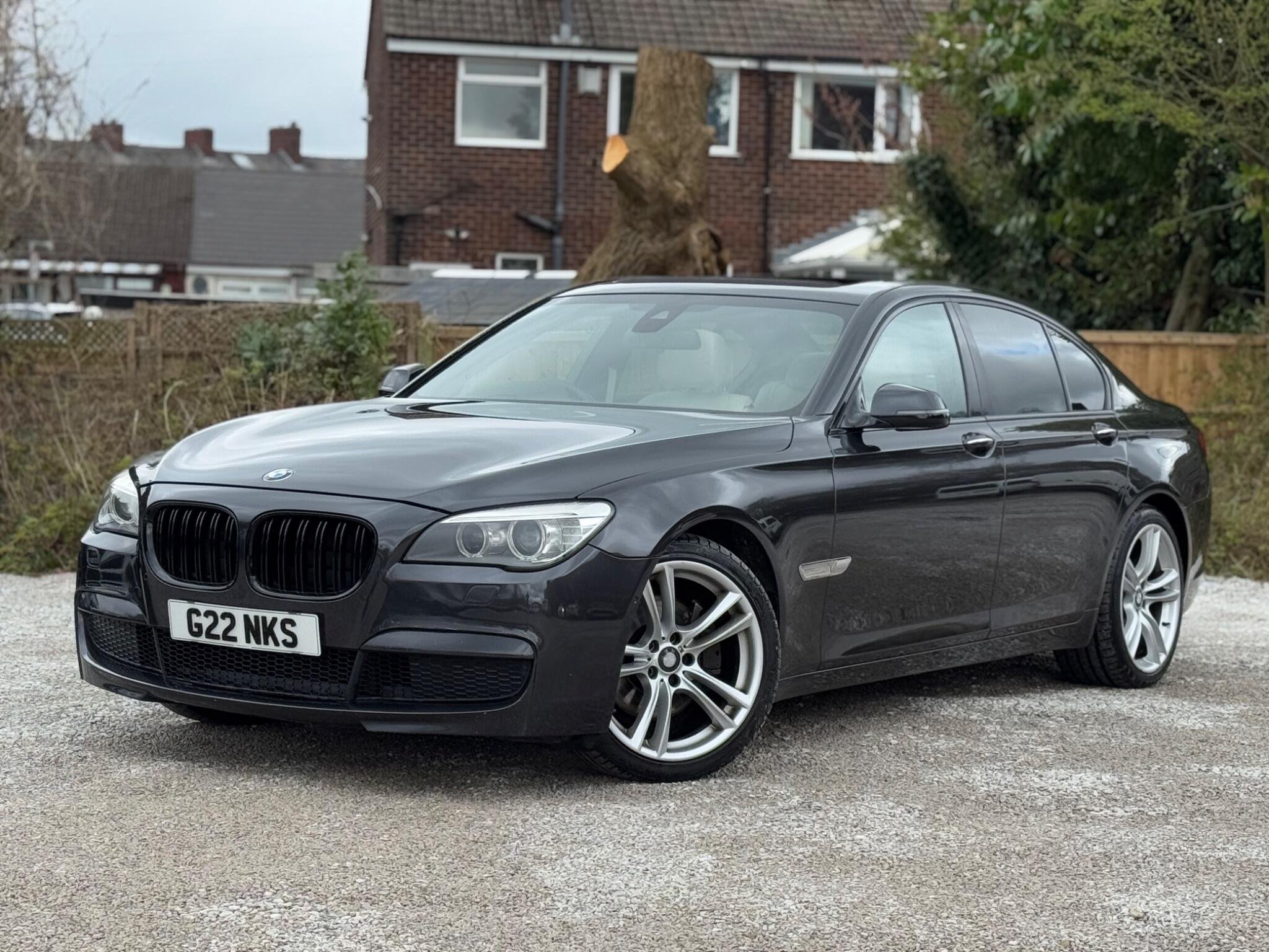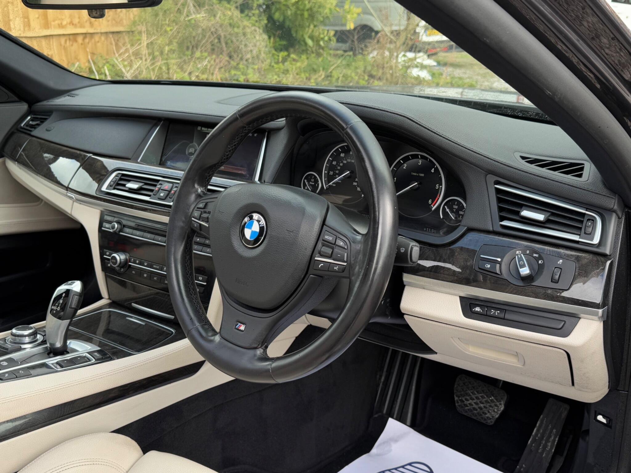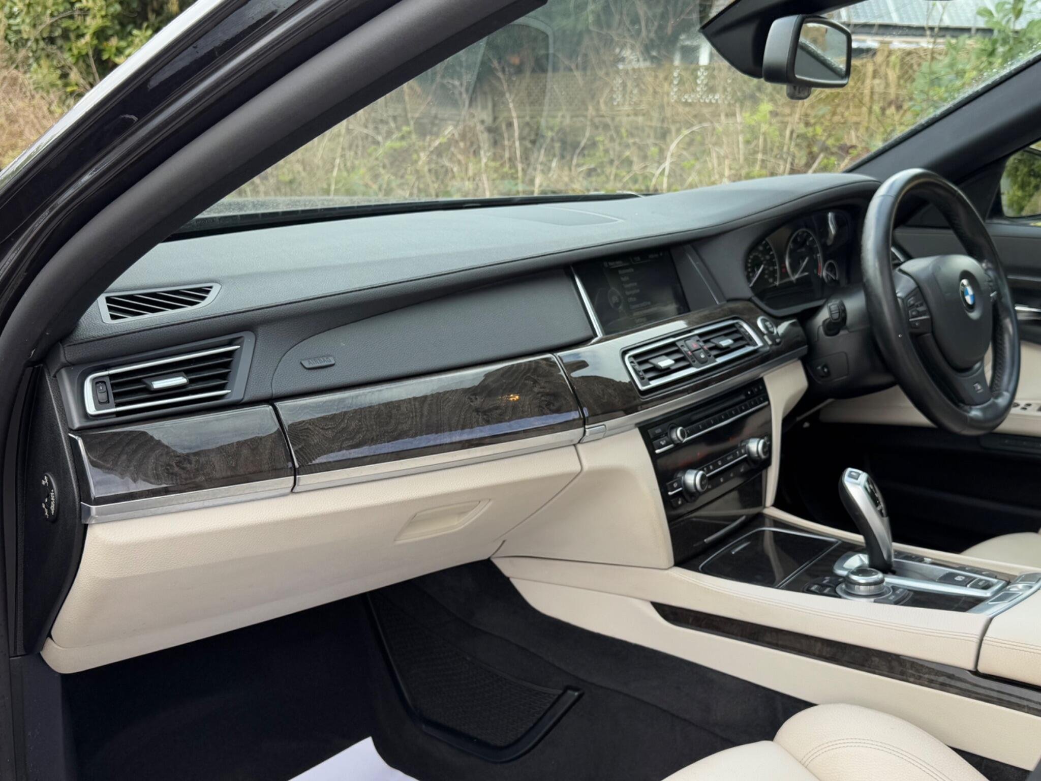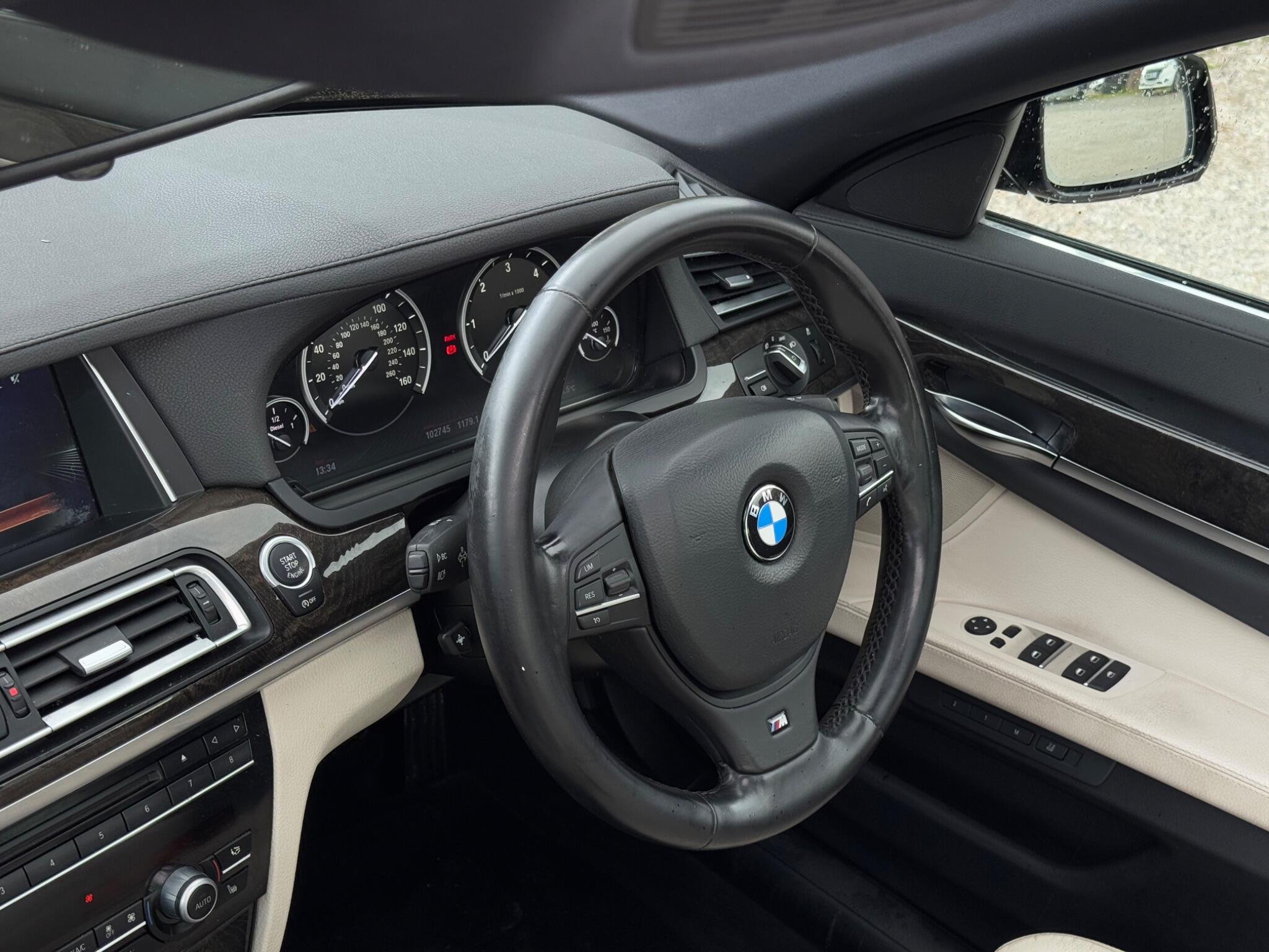 SERVICE HISTORY - 10 SERVICES - 4 MAIN DEALER SERVICES|LOGBOOK|K2| Surround-View Rare VIN spec Interior Trim - Ash Grain Anthracite Fine Wood High Gloss VIN spec 20in Alloy Wheels - M Light Double Spoke - 303M VIN spec Bootlid Operation - Powered VIN spec Dakota Leather - Ivory White VIN spec Reversing Assist Camera VIN spec Sun Protection Glazing VIN spec Features: Sat nav Panoramic roof Heated seats Parking camera This 2013 BMW 740d M Sport presents a remarkable opportunity with its exceptionally low mileage of just 102,537 miles for a vehicle of its age. As a distinguished 7 Series model, this 740d M Sport variant boasts a powerful 3.0L diesel engine, offering a compelling blend of performance and efficiency. The M Sport trim enhances its already sophisticated presence, while notable features such as Surround View with 360 degree camera parking assistance and enhanced Bluetooth telephone functionality with USB audio interface and voice control ensure a connected and convenient driving experience. Safety is also paramount, with the inclusion of a Lane Departure Warning System and Approach Control Warning. The impressive acceleration of this BMW 740d M Sport, achieving 0-62mph in a swift 5.5 seconds, clearly sets it apart from many other vehicles in its class. This rapid response, combined with the generous boot space, highlights the thoughtful engineering that makes this 7 Series a practical yet exhilarating choice. The inclusion of a USB audio interface further adds to the modern convenience offered within this well appointed saloon. -