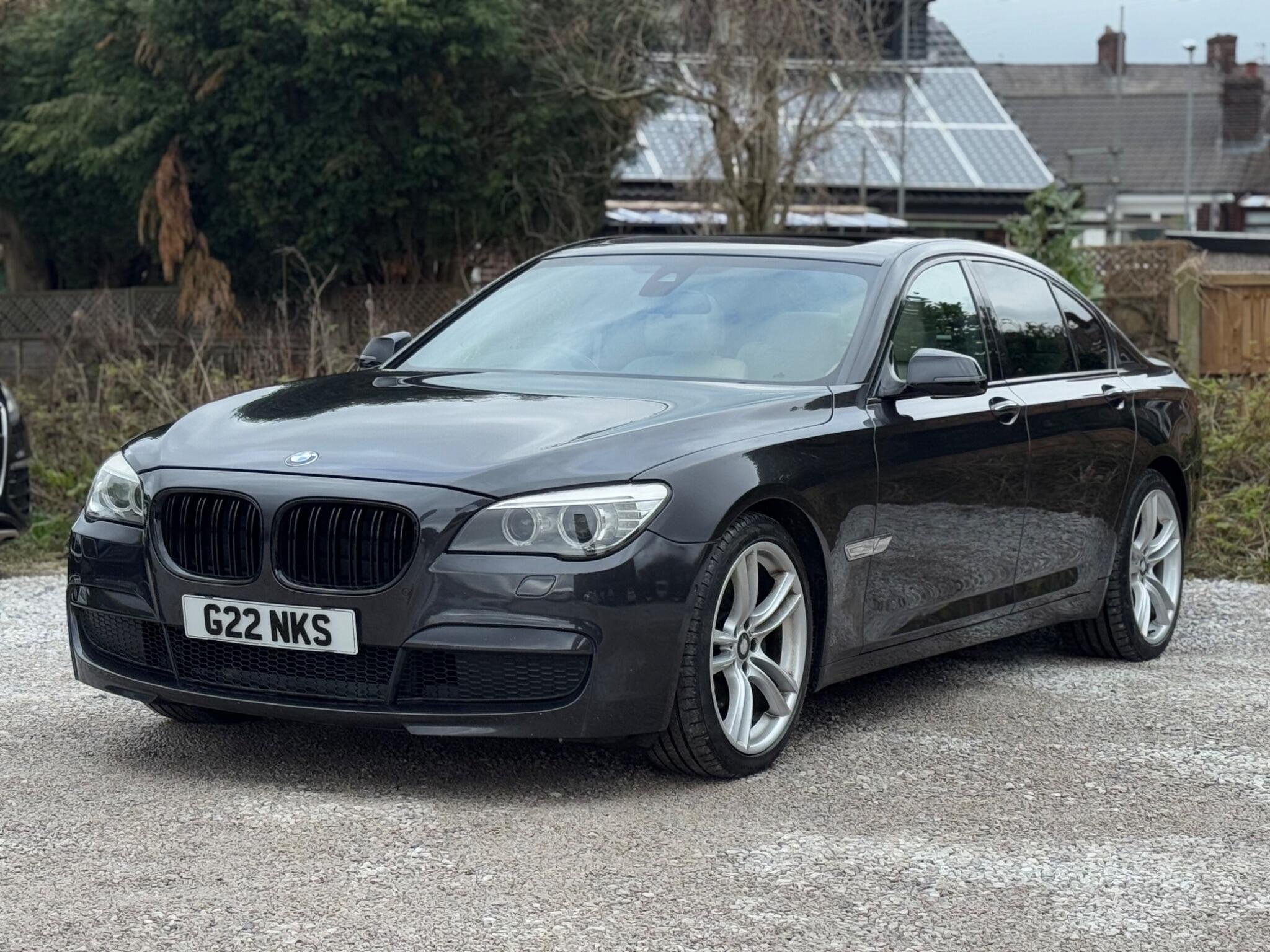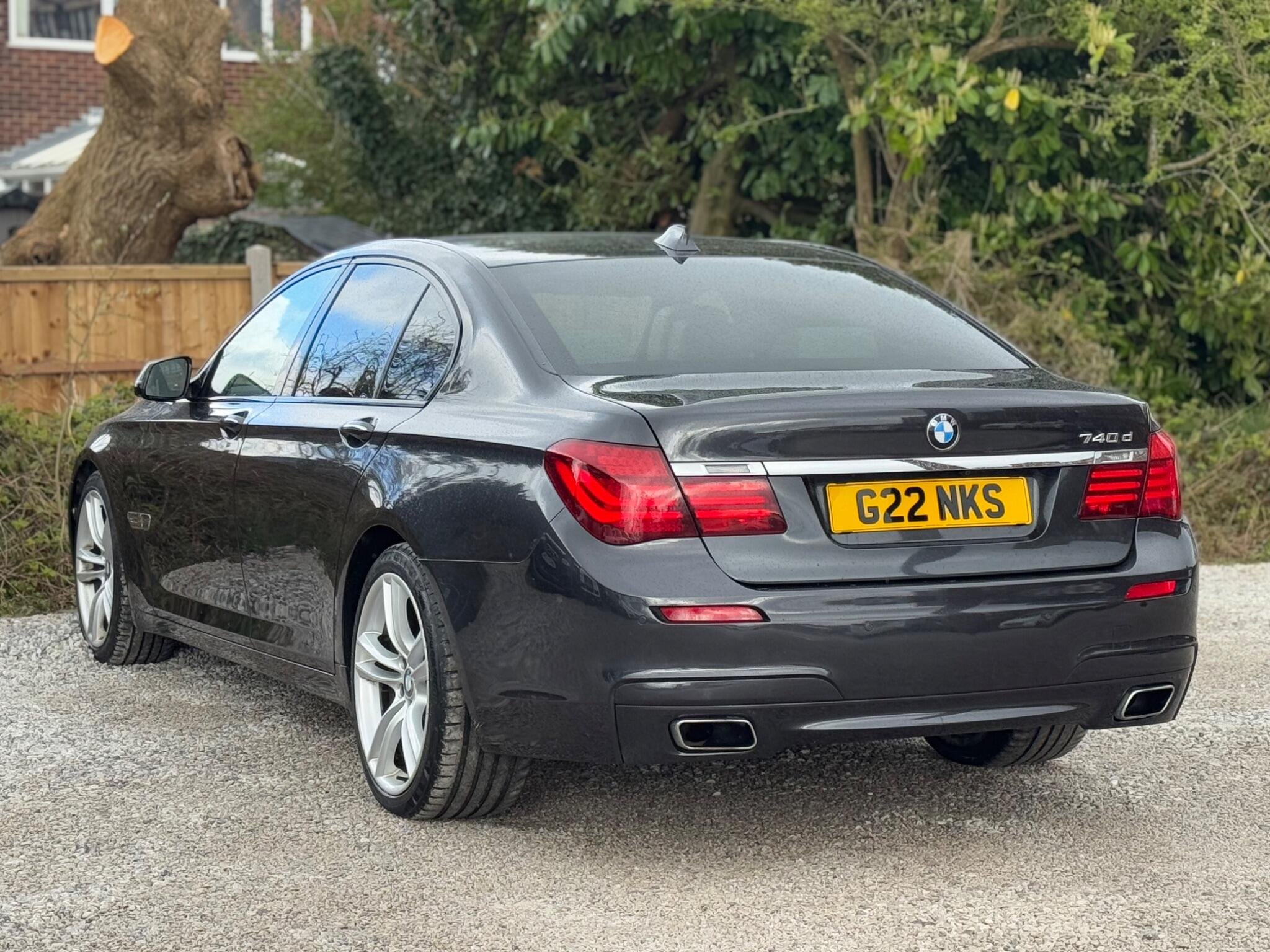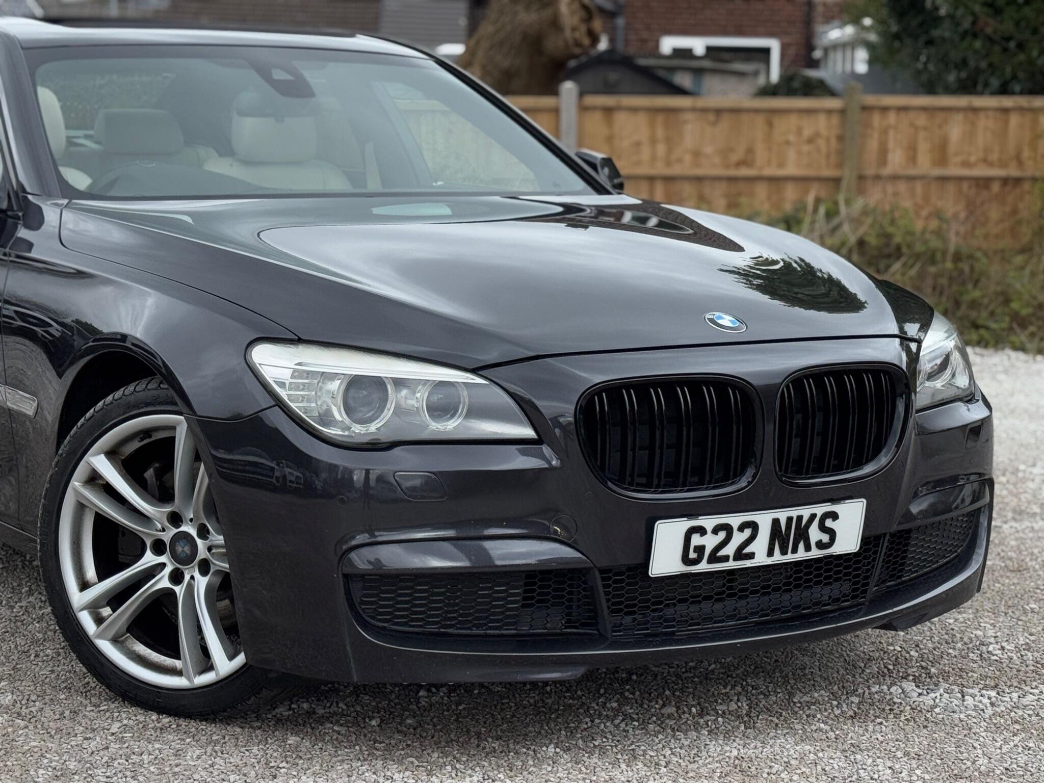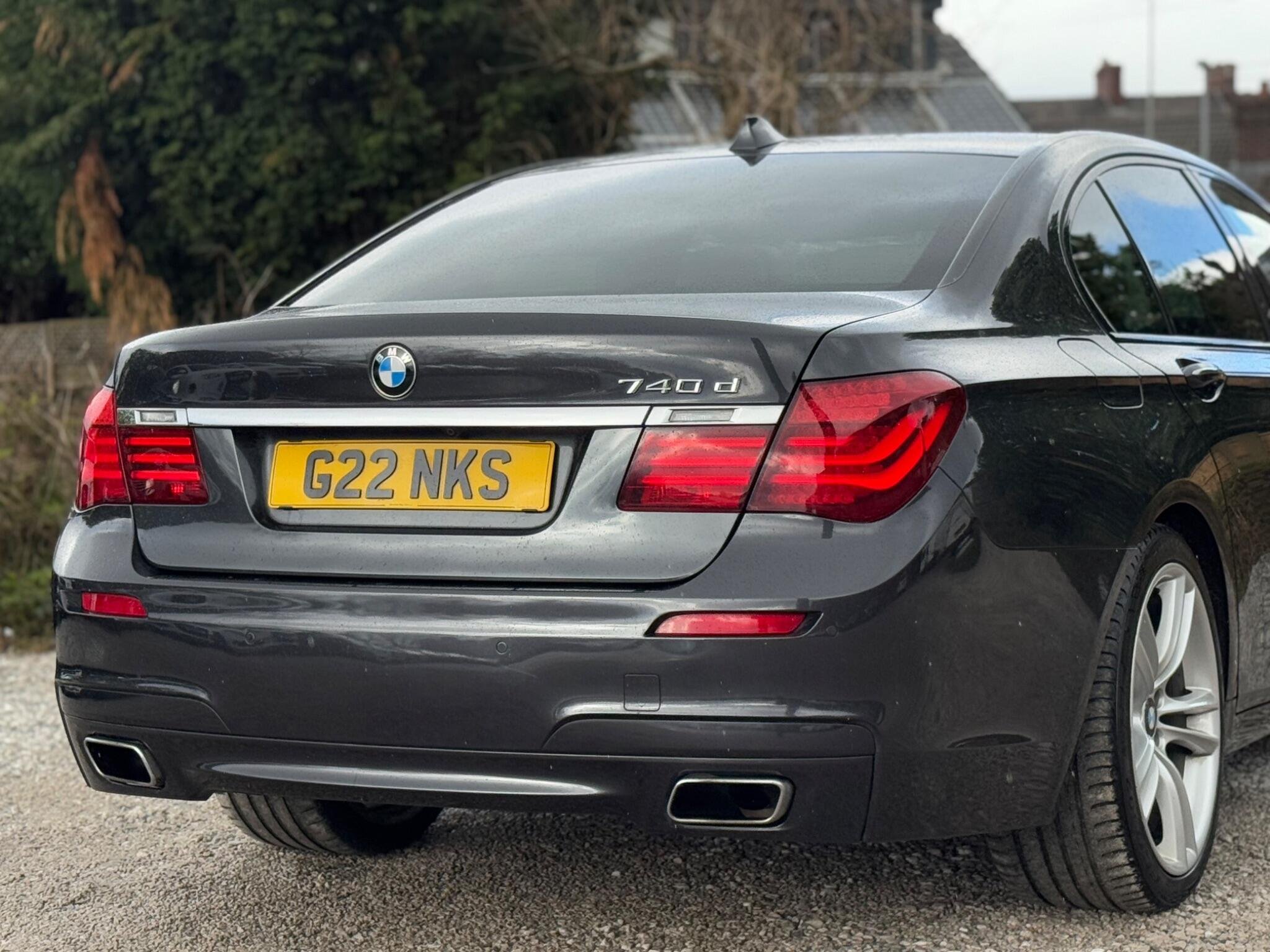 SERVICE HISTORY - 10 SERVICES - 4 MAIN DEALER SERVICES|LOGBOOK|K2| Surround-View Rare VIN spec Interior Trim - Ash Grain Anthracite Fine Wood High Gloss VIN spec 20in Alloy Wheels - M Light Double Spoke - 303M VIN spec Bootlid Operation - Powered VIN spec Dakota Leather - Ivory White VIN spec Reversing Assist Camera VIN spec Sun Protection Glazing VIN spec Features: Sat nav Panoramic roof Heated seats Parking camera This 2013 BMW 740d M Sport presents a remarkable opportunity with its exceptionally low mileage of just 102,537 miles for a vehicle of its age. As a distinguished 7 Series model, this 740d M Sport variant boasts a powerful 3.0L diesel engine, offering a compelling blend of performance and efficiency. The M Sport trim enhances its already sophisticated presence, while notable features such as Surround View with 360 degree camera parking assistance and enhanced Bluetooth telephone functionality with USB audio interface and voice control ensure a connected and convenient driving experience. Safety is also paramount, with the inclusion of a Lane Departure Warning System and Approach Control Warning. The impressive acceleration of this BMW 740d M Sport, achieving 0-62mph in a swift 5.5 seconds, clearly sets it apart from many other vehicles in its class. This rapid response, combined with the generous boot space, highlights the thoughtful engineering that makes this 7 Series a practical yet exhilarating choice. The inclusion of a USB audio interface further adds to the modern convenience offered within this well appointed saloon. -