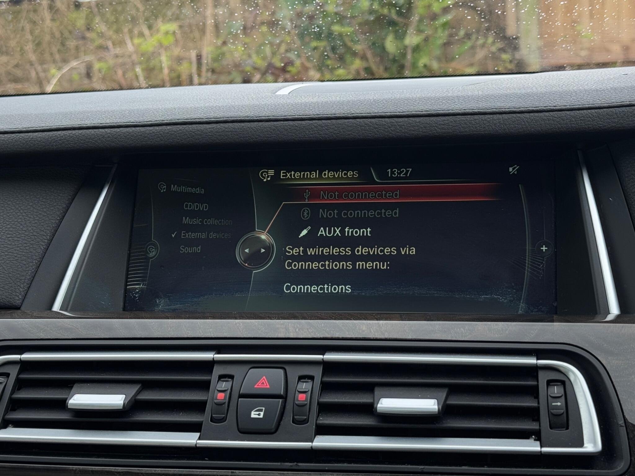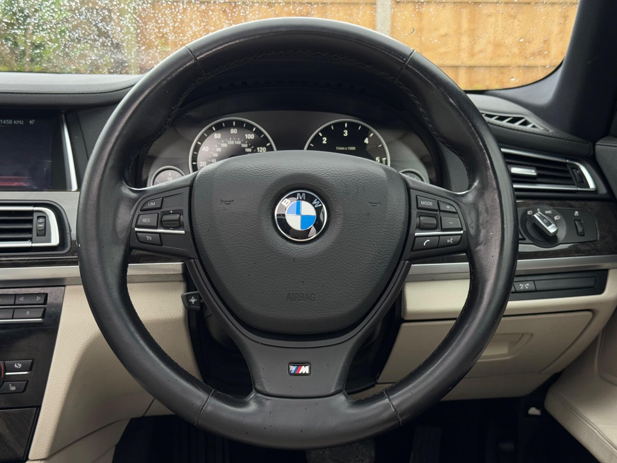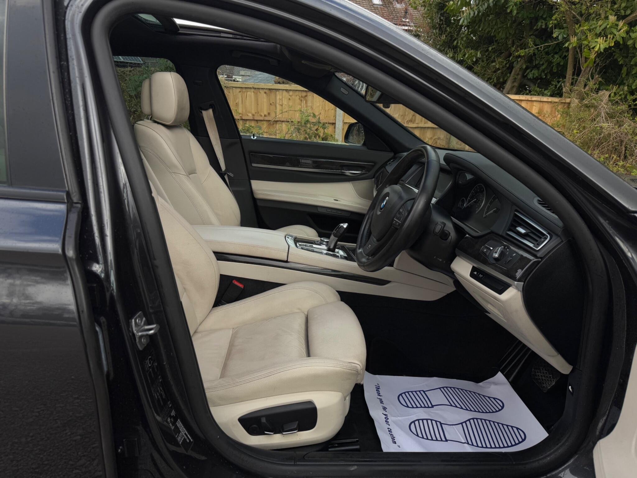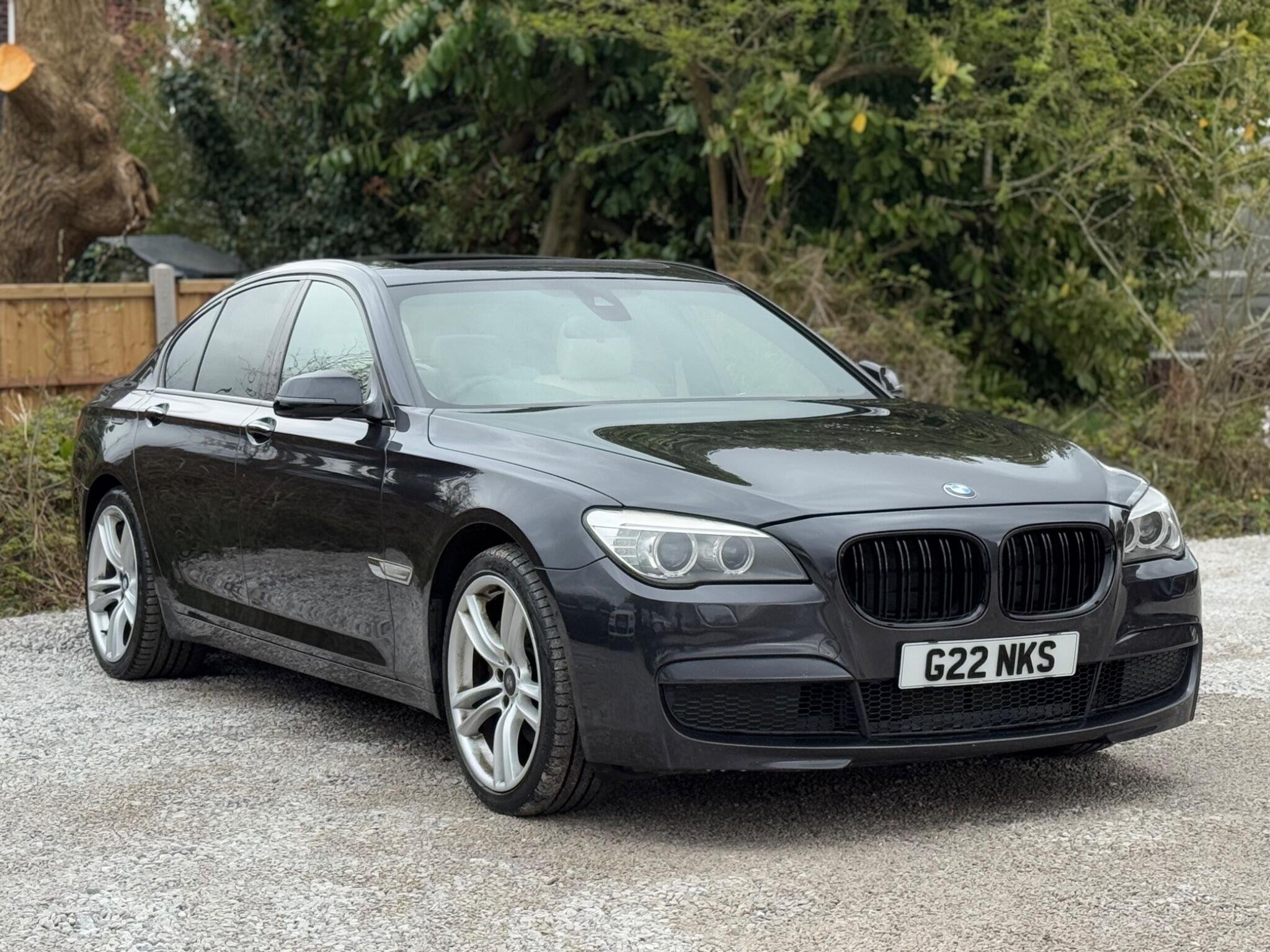 SERVICE HISTORY - 10 SERVICES - 4 MAIN DEALER SERVICES|LOGBOOK|K2| Surround-View Rare VIN spec Interior Trim - Ash Grain Anthracite Fine Wood High Gloss VIN spec 20in Alloy Wheels - M Light Double Spoke - 303M VIN spec Bootlid Operation - Powered VIN spec Dakota Leather - Ivory White VIN spec Reversing Assist Camera VIN spec Sun Protection Glazing VIN spec Features: Sat nav Panoramic roof Heated seats Parking camera This 2013 BMW 740d M Sport presents a remarkable opportunity with its exceptionally low mileage of just 102,537 miles for a vehicle of its age. As a distinguished 7 Series model, this 740d M Sport variant boasts a powerful 3.0L diesel engine, offering a compelling blend of performance and efficiency. The M Sport trim enhances its already sophisticated presence, while notable features such as Surround View with 360 degree camera parking assistance and enhanced Bluetooth telephone functionality with USB audio interface and voice control ensure a connected and convenient driving experience. Safety is also paramount, with the inclusion of a Lane Departure Warning System and Approach Control Warning. The impressive acceleration of this BMW 740d M Sport, achieving 0-62mph in a swift 5.5 seconds, clearly sets it apart from many other vehicles in its class. This rapid response, combined with the generous boot space, highlights the thoughtful engineering that makes this 7 Series a practical yet exhilarating choice. The inclusion of a USB audio interface further adds to the modern convenience offered within this well appointed saloon. -