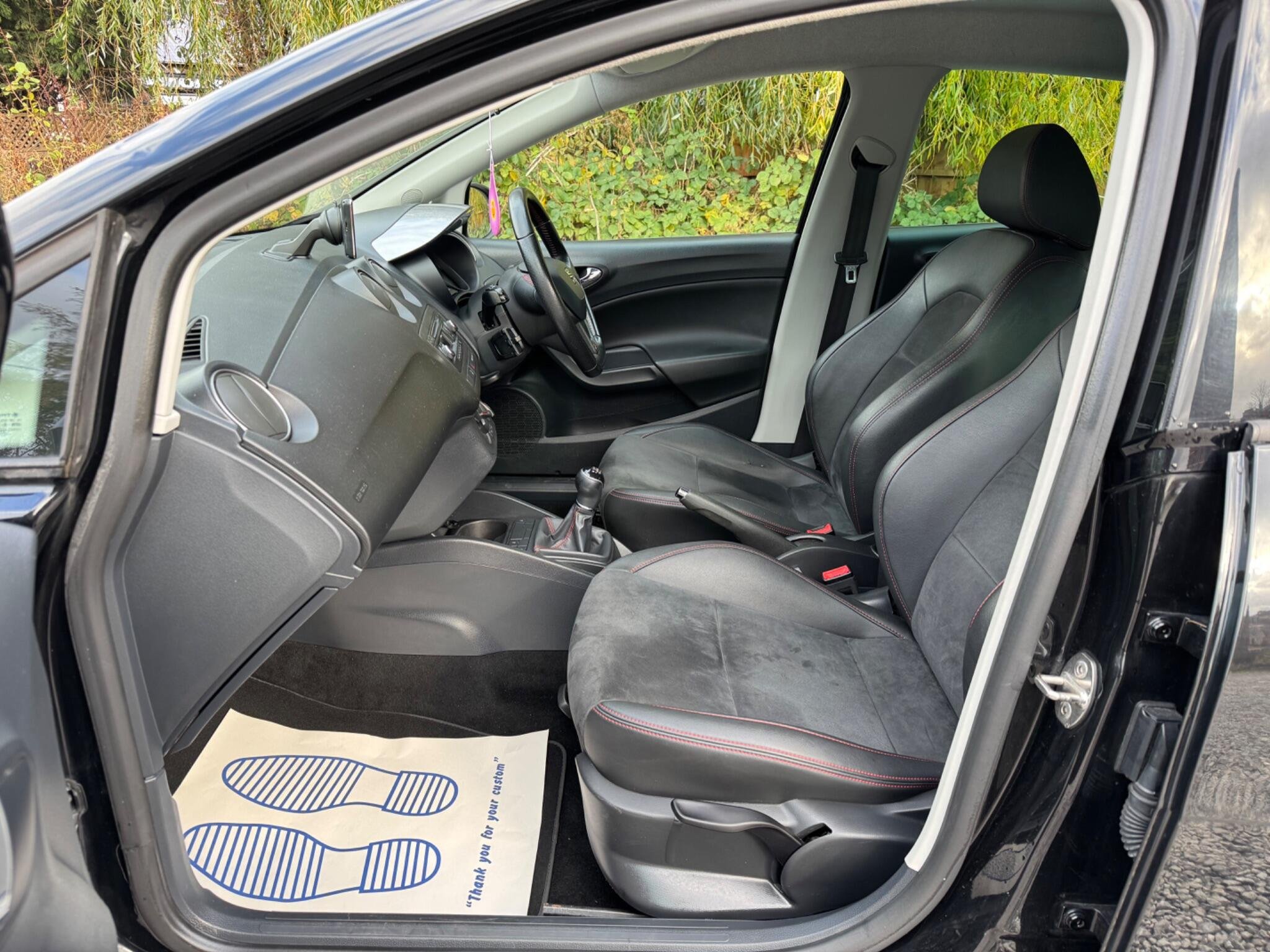 3 FORMER KEEPERS|LOGBOOK|FULL BLACKPACK|ULEZ COMPLIANT| Equipment: Navigation System - Mapped Removable NAV System Unit Air Conditioning Half Leather Trim 17" Alloy Wheels This 2015 SEAT Ibiza TSI FR Black offers a compelling blend of style and performance, making it a standout choice in its class. Powered by an efficient 1.2 litre petrol engine, this FR Black trim model delivers an engaging driving experience with a brisk 0-62mph acceleration time of just 9.8 seconds. Inside, you'll find a comfortable cabin equipped with essential modern conveniences, including air conditioning to keep you cool on warmer days, and seamless Bluetooth connectivity for both phone calls and audio streaming, ensuring you stay connected and entertained on every journey. The SEAT Ibiza TSI FR Black is designed to impress, and its performance figures highlight its capabilities. The 9.8 second 0-62mph time demonstrates a responsiveness that sets it apart from many other vehicles in its segment. This combination of a spirited engine, the sporty FR Black styling, and practical features like Bluetooth and air conditioning makes this 2015 Ibiza a well rounded and desirable hatchback for everyday driving. -